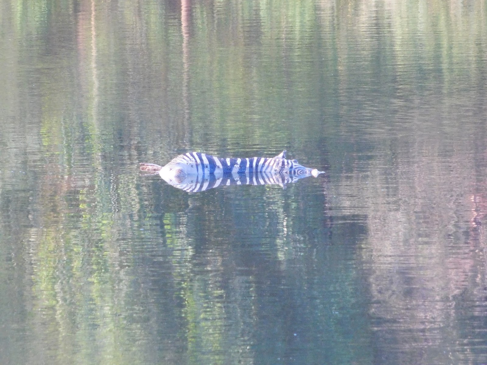 A zebra that the crocodiles had drug into the water and drowned. The next day they had dragged it closer to shore and were feasting on it. |